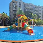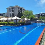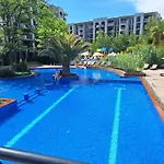 Новият апартамент с три стаи с гледка към басейна в комплекса Каскадас Ризорт в Слънчев бряг е с площ от 70 кв.м. и се намира на 17 минути пеша от плажа на Слънчев бряг и привлича гостите си със зона за процедури, сауна и външен басейн. Плаж Глобус е на 14 минути пеша от единичния апартамент с една спалня, докато автобусната спирка Поликлиника е на кратко разстояние от имота.